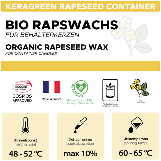 Derzeit vergriffenBio-Rapswachs für Behälterkerzen 'Keragreen Rapeseed Container'