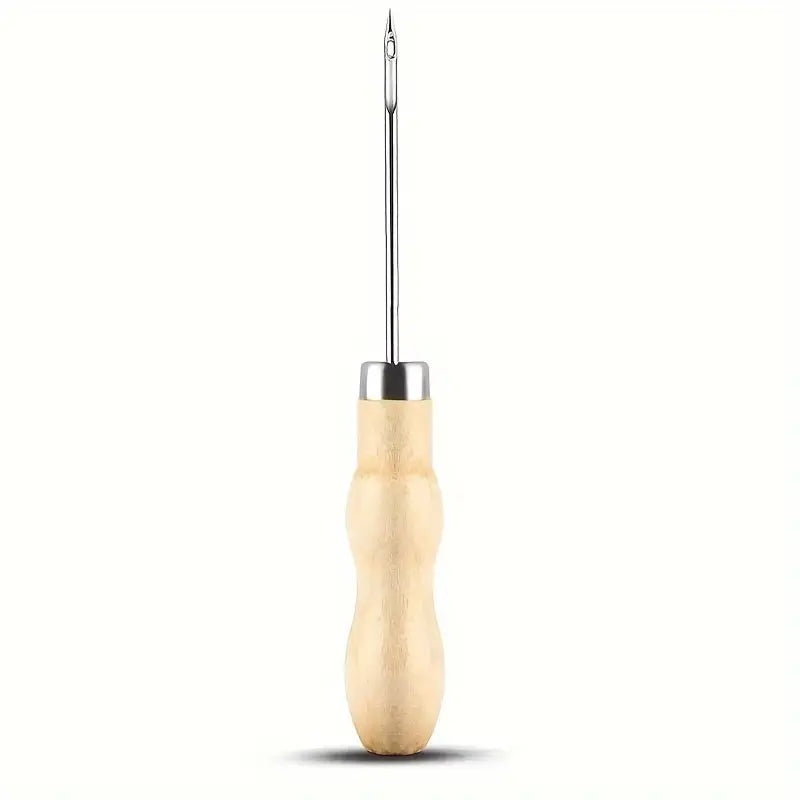 Die Dochtnadel hat einen Griff aus Holz und kommt mit einer Spitzen-Sicherung aus Gummi daher.