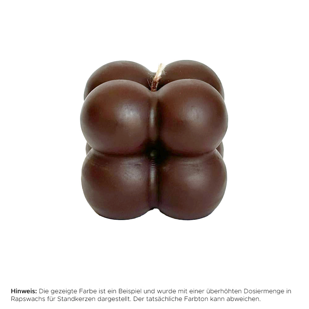 Mit der flüssigen Kerzenfarbe “Braun” lässt sich dein Kerzenwachs mühelos einfärben. Die Farbe zeichnet sich durch ihre hohe Ergiebigkeit und hervorragende Verarbeitungsfähigkeit aus. Bereits wenige Tropfen genügen, um eine gleichmäßige und intensive Färbung zu erzielen. Die Farbe lässt sich problemlos mit anderen Farbtönen mischen und bietet daher schier unendliche Möglichkeiten bei der Farbauswahl. Sie wir in Deutschland produziert und abgefüllt und zeichnet sich durch eine sehr hohe Qualität aus.