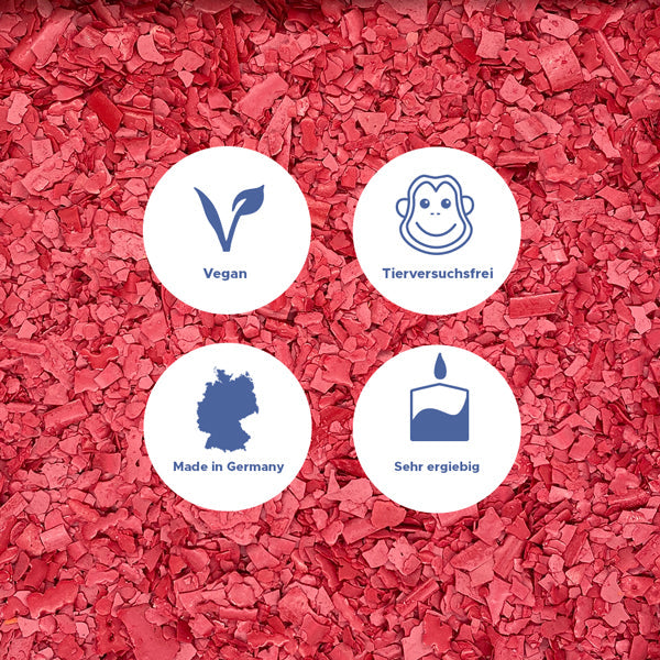 Unsere Farben werden in Deutschland produziert und bestehen aus einer Mischung von Farbpigmenten und Farbstoffen, welche brillante Farben und Kräftige Töne in deinen Kerzen erzeugen, ohne das Brennverhalten deiner Kerze zu stark zu beeinflussen. Die Kerzenfarben können für jegliche Naturwachse (Rapswachs, Sojawachs und Sonnenblumenwachs, bedingt auch Bienenwachs), aber auch Paraffin-, Stearin und Palmwachsmischungen, angewendet werden und kommen in praktischen, wiederverschliessbaren Tüten aus Maisstärke daher, die die Umwelt nicht belasten.